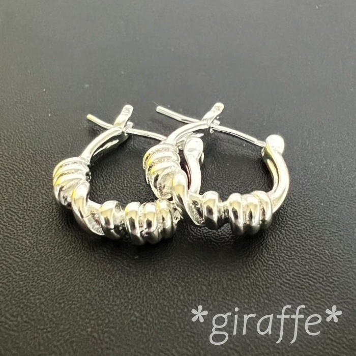 くるくると巻き付いたシルエットが可愛らしいリングピアスです。