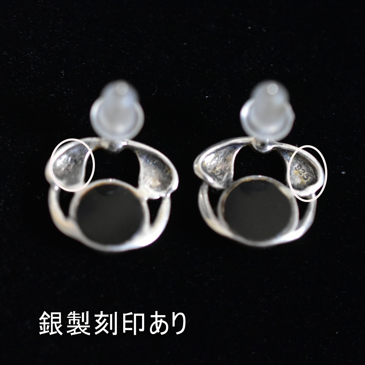 Product name: ヴィンテージ Silver925刻印 銀のバラのピアス オニキス シリコンキャッチ付き 本物保証 シルバー/銀製刻印あり