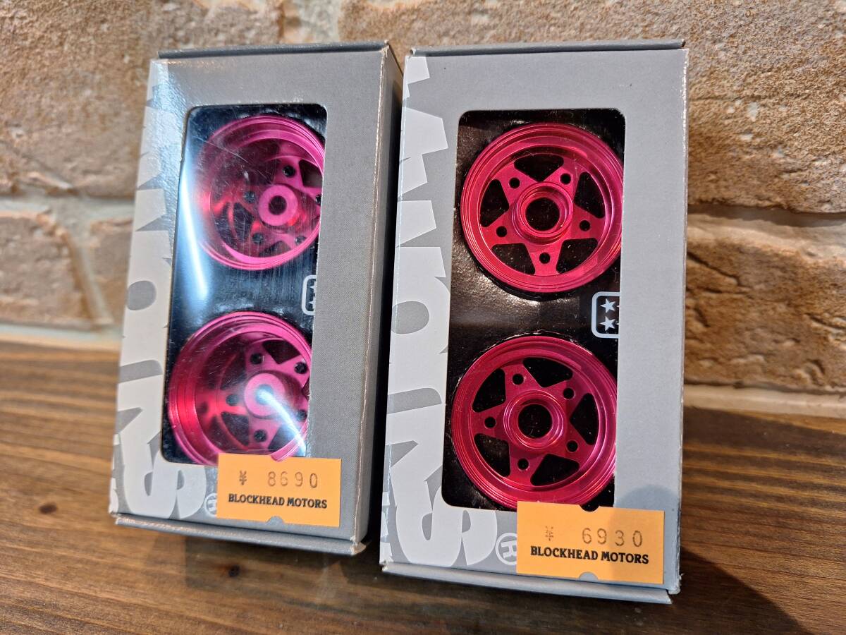 アルミ削り出しのスターデザインフロント/リアホイールです。現在欠品中のパーツです。