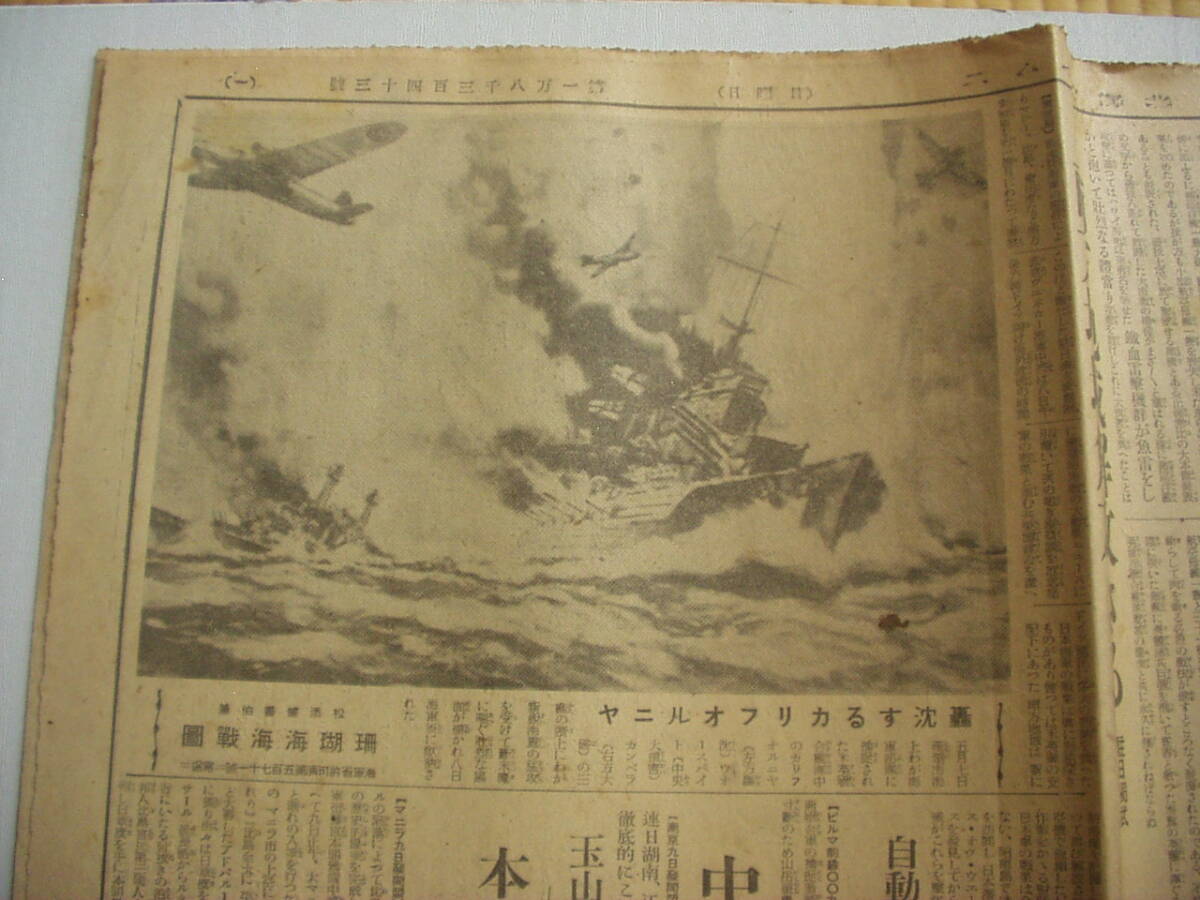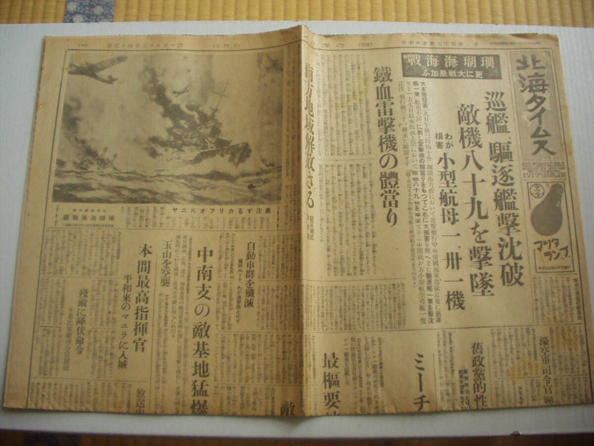Product name: 北海タイムス 昭和17年5月10日 珊瑚海海戦 轟沈するカリフオルニヤ/松添健画伯 白衣の天使二人壮途へ
