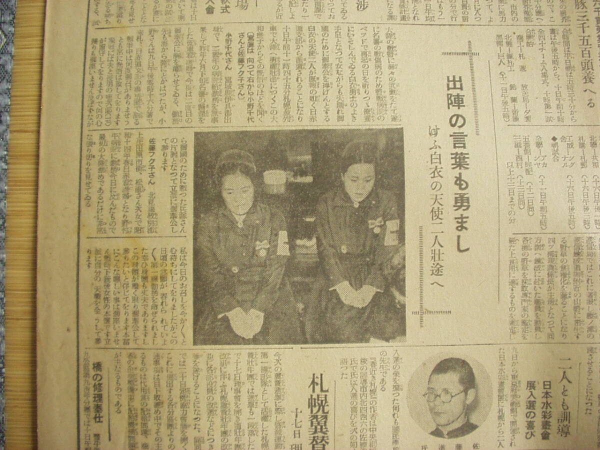 北海タイムス 昭和17年5月10日 珊瑚海海戦 轟沈するカリフオルニヤ/松添健画伯 白衣の天使二人壮途へ