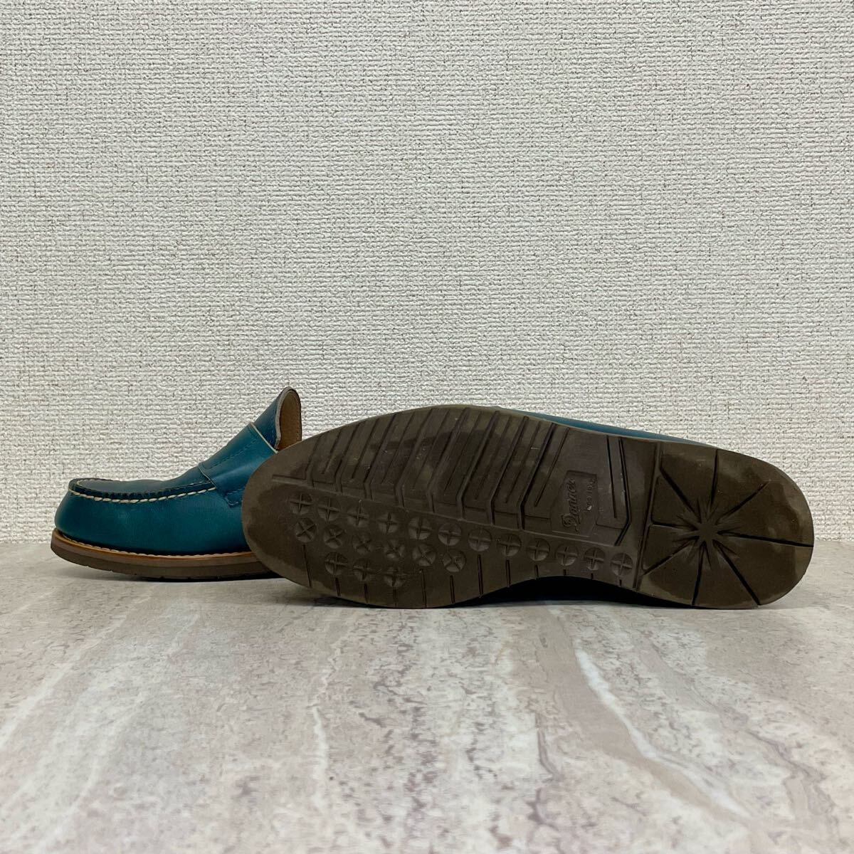 【その他】クロムエクセルネイビーとブルーの間のような色味のローファーになります。クロムエクセルによく似た革質です。ご覧の通りマッケイ製法でございますが、ダナーショップの店員さん曰くオールソール可能との事です。焦茶部分のソールを貼り替えてご使用になられても良いかと思います。