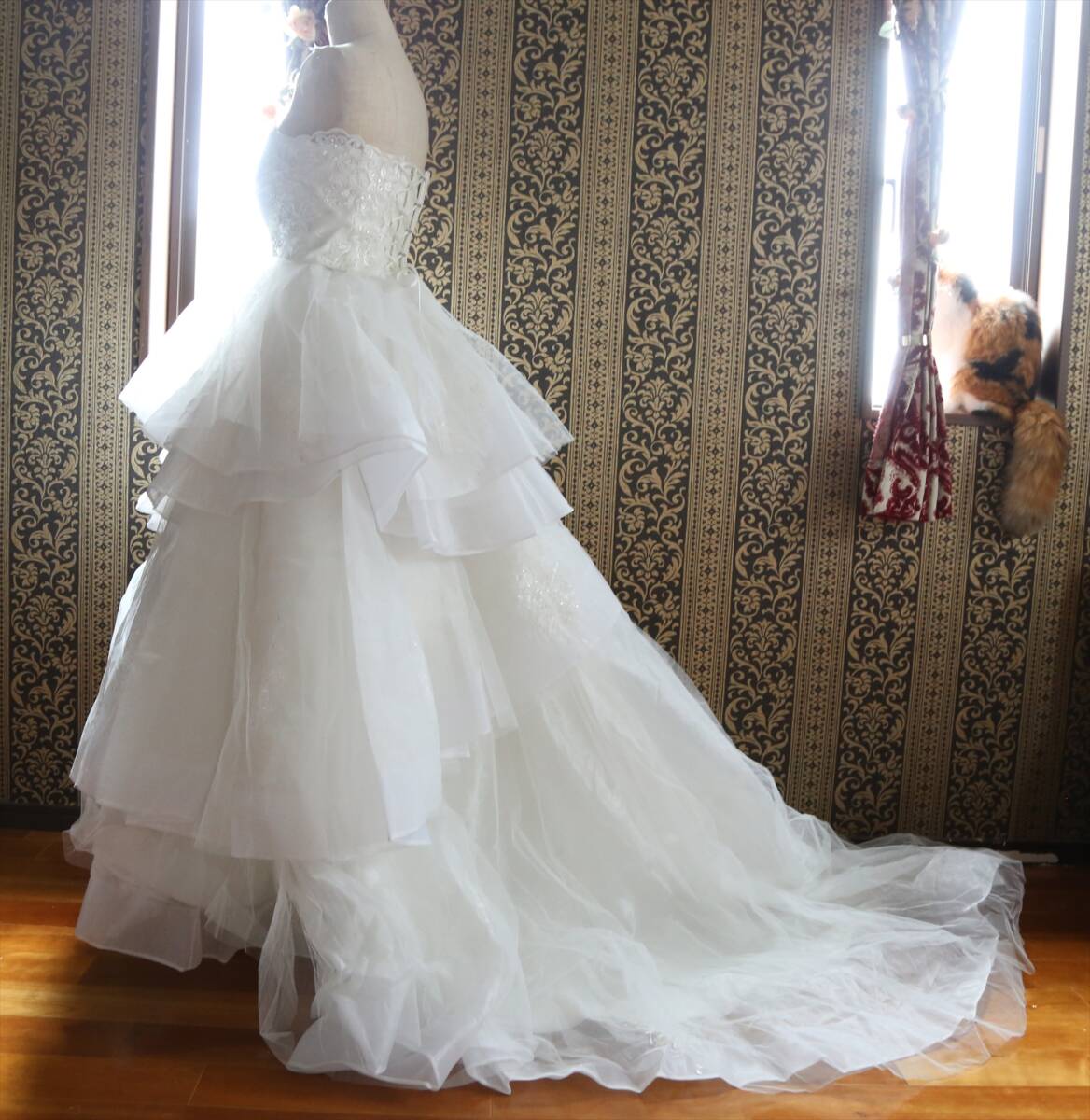 足先が若干見えるデザイン高級ウエディングドレス3号5号7号XXS~Sサイズ小さいサイズ編上げ調節可能