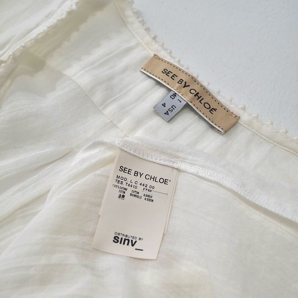 シーバイ クロエ シアー レース ブラウス 白 オフ ホワイト 40 レディース M S L サイズ SEE BY CHLOE シャツ パフスリーブ 5分袖 Vネック