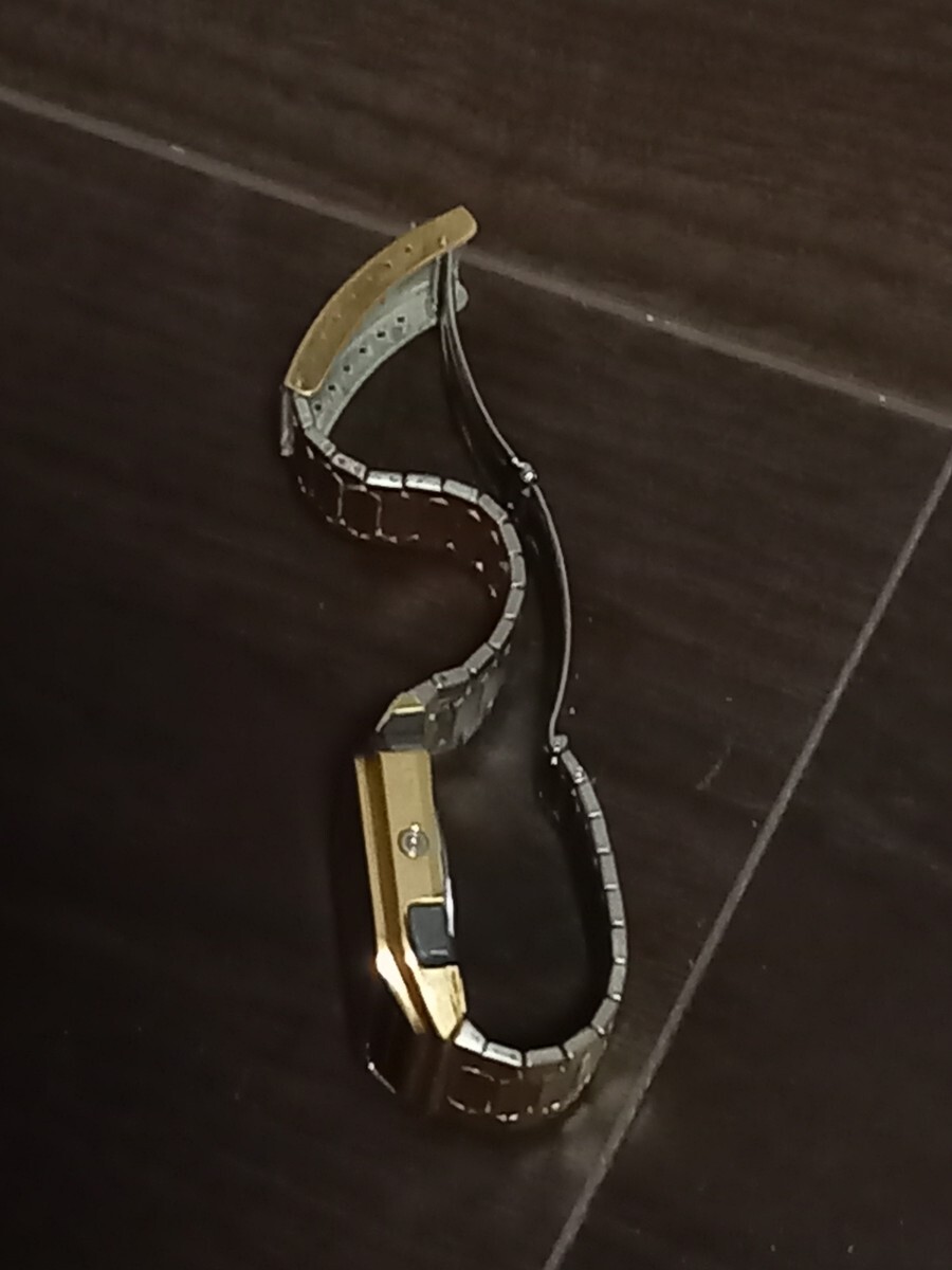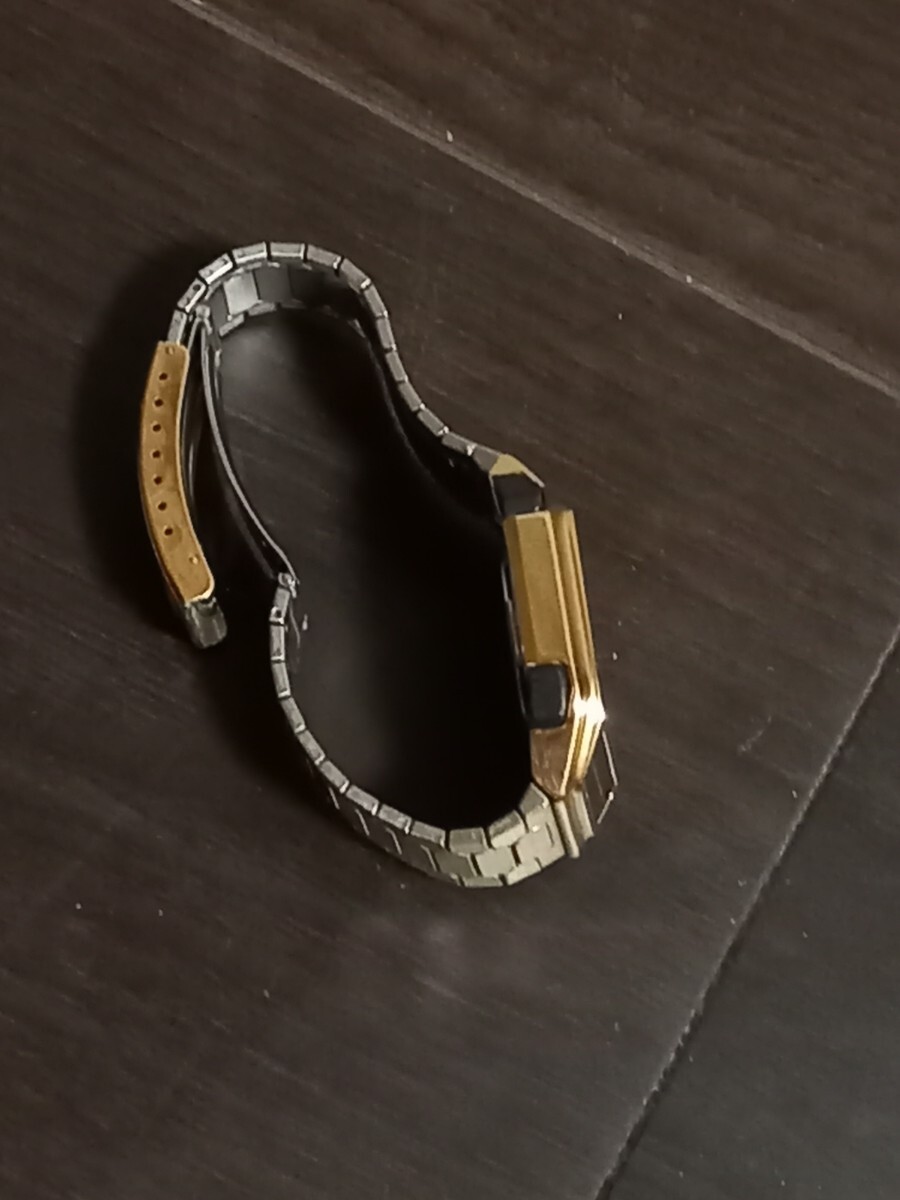 OMEGA SEAMASTER SENSOR オメガ デジタル ウォッチ シーマスター センサー クォーツ ゴールド 稼働中のジャンク品です。状態はビンテージ品で稼働してますが、当方には作動が難しくて時間をあわせてないです。内部も状態不明でわかりませんのでジャンク品扱いでお願いします。外部の状態は比較的に良いと思います。腕回りのサイズは約17センチです。大変珍しくデザインや配色も良く当方は時計というよりアクセサリー的にファッションとしてつけてましたので、専門的な詳細な質問には答えられませんので、ご理解ください。必ず当方の自己紹介欄を見てから質問、入札、落札してください。ノークレームノーリターンで、お願いします。