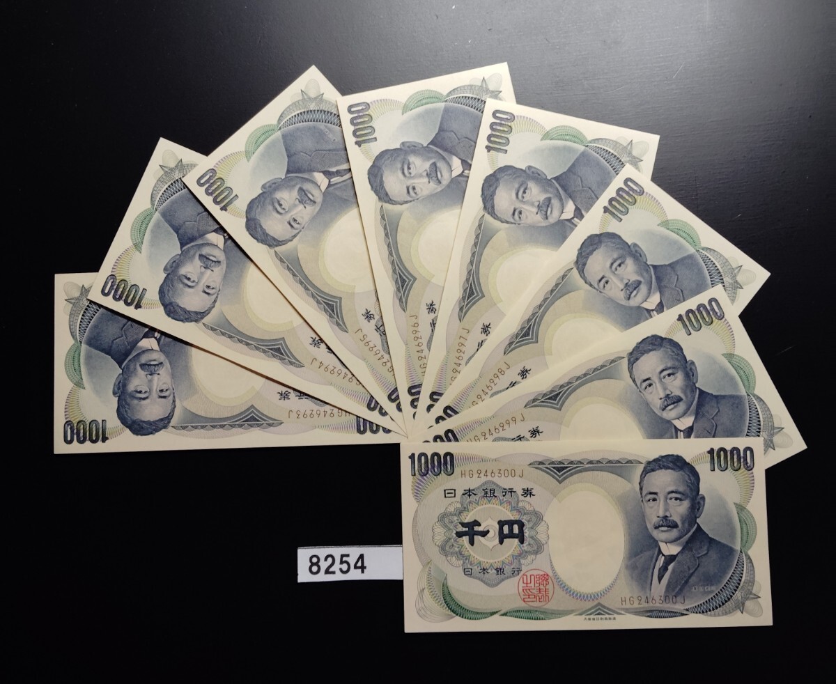8254 未使用 ピン札シミ焼け無し 日本銀行券 夏目漱石 千円旧紙幣 8連番  大蔵省印刷局製造 帯封出し
