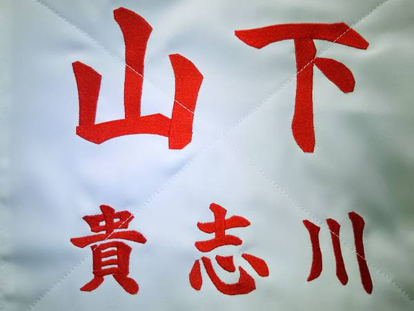 当方刺繍業のかたわら、少年柔道の指導もしており、自分の生徒用に破れず色落ちしない長持ちするゼッケンとして作り始めたものです。