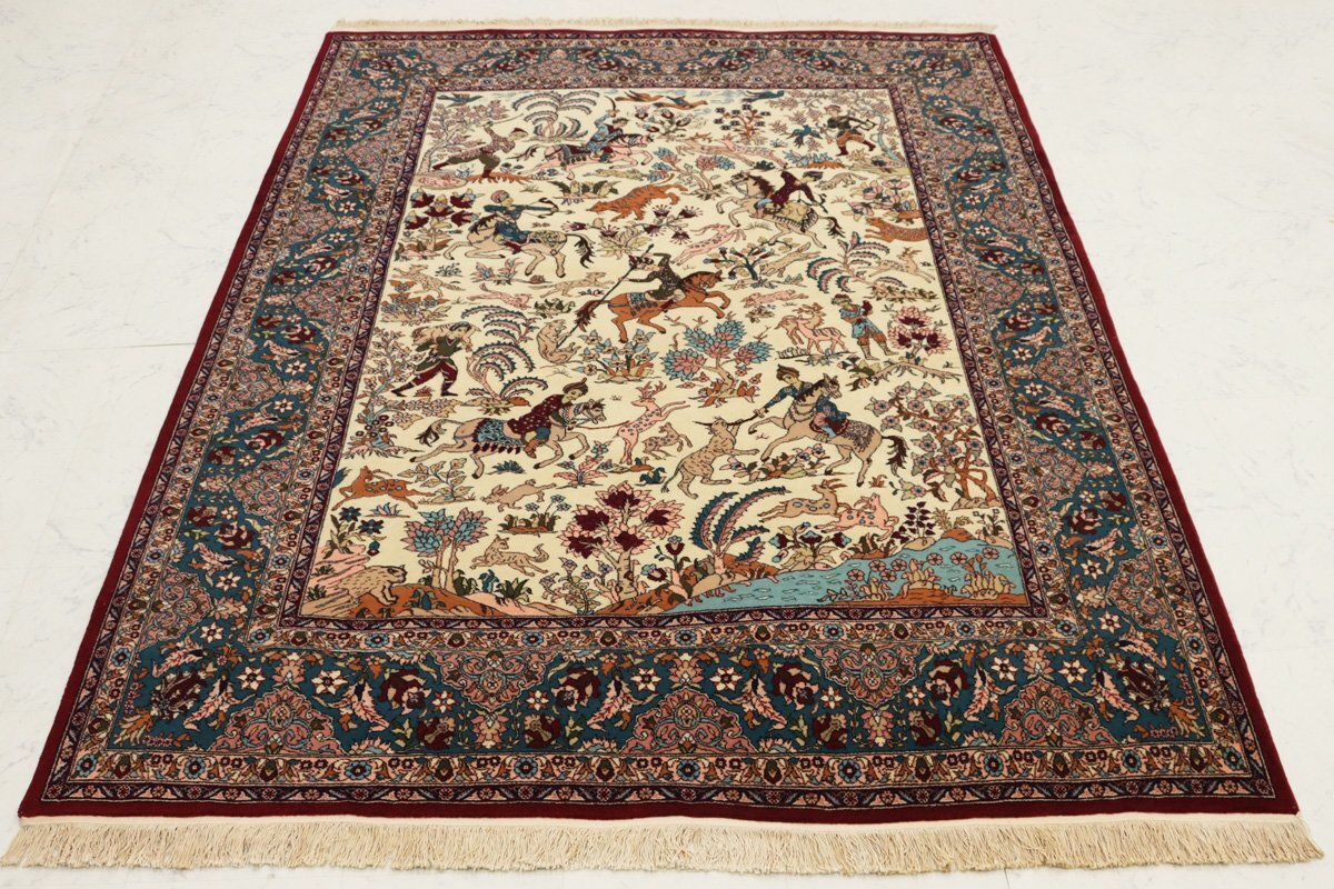 Product name: 魁◆最高級伝統トルコ絨毯 ウール 手織り 希少名作品 伝統物語絵柄 大判243×177㎝ 民族伝統狩り図柄 状態極上美品!名作品!