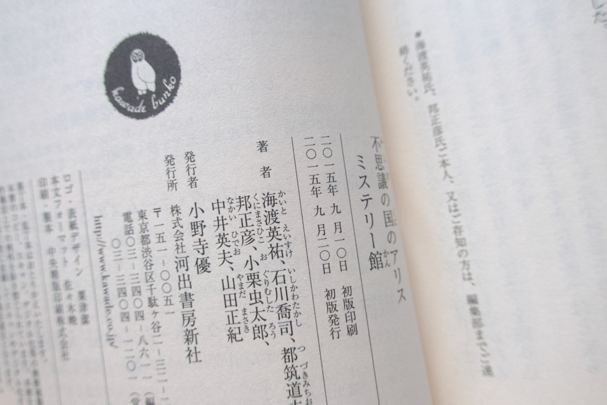 Product name: 不思議の国のアリス ミステリー館 (河出文庫) 中井英夫小栗虫太郎都筑道夫海渡英祐石川喬司山田正紀邦正彦 2015年初版