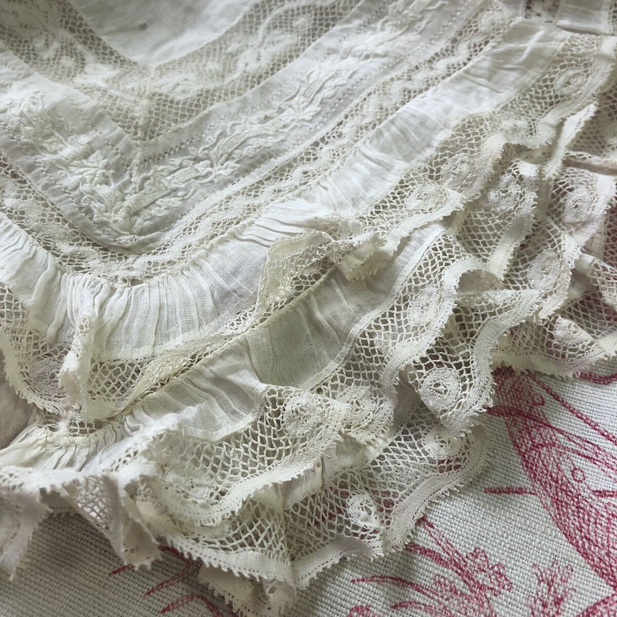 フランス・パリの良家のお宅から譲り受けた物です。 豪華!美しいイニシャル刺繍入りたっぶりレースのハンカチです♪ 大人気!貴重なイニシャル入りの刺繍ハンカチ! ため息な出そうなぐらいの繊細な刺繍がぐるりと縁に、たっぷりギャザーにロマンティックなレース、 角に1箇所イニシャルと思われる刺繍が施された大変贅沢なハンカチです! 持っているだけで幸せ気分、ドールやコレクショ、やハンドメイドにも。。 1点限りです!ぜひこの機会をお見逃しなく♪ 大きさ 34cm四方 (多少の誤差はあると思います) 状態. 古い物です。 購入時のまま。 経年劣化変色傷小穴シミなどは多少ございます。 ヴィンテージレース好きでご理解があり慣れている方へ。 不安な方、古い物にご理解の無い方、特に状態などに神経質な方には向きませんので入札しないでください 画像のような柄です。切り方ど柄ゆきは全く同じではない場合もあります。 画像を良く御覧になりご入札ください ☆まとめ買い可能です。 (落札後まとめ買い依頼をしてください) ご注意:(必ずお読みください)*落札後24時間以内にご連絡、及び3日以内にご入金できる方のみ御入札下さい*新規の方、悪い評価の多い方は購入意志がある事を質問欄に前持って書いてから入札してくださいそれ以外の場合は入札されても削除致します*入札後のキャンセル、変更、クレーム、質問等は一切受け付けられません。(EX:品物到着後、色や素材やなどがイメージや画像とが思っていたような物と違うなどのクレームで悪い評価を付けた場合、こちらからも付けさせて頂きます)輸送中の事故は紛失などでの返金は致し兼ねます、クレームも受け付けられません*同梱発送をご希望の場合には必ずメッセージ欄から御知らせ下さい(ご精算はその都度お願い致します)送料がお得になる場合が多いですがならない場合もあります*オークション終了の24時間前迄に入札がない場合
