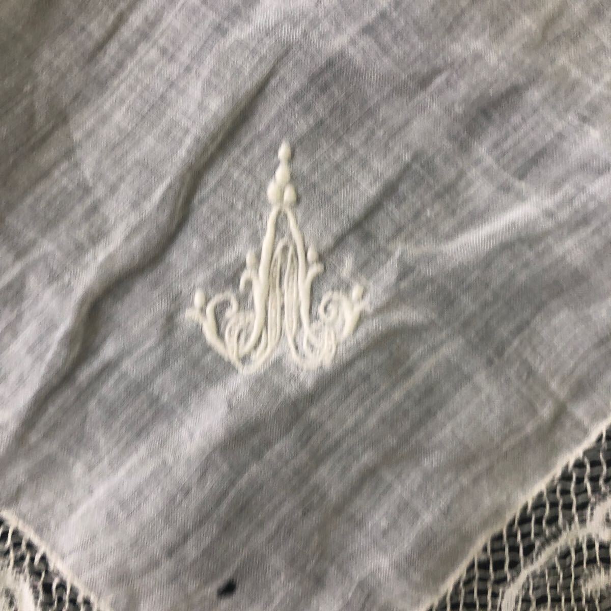 Product name: フランスアンティーク 豪華!美しいイニシャル入りたっぷりレースのハンカチ!手刺繍 ヴァランジェンヌ ハンドメイド リメイク 素材
