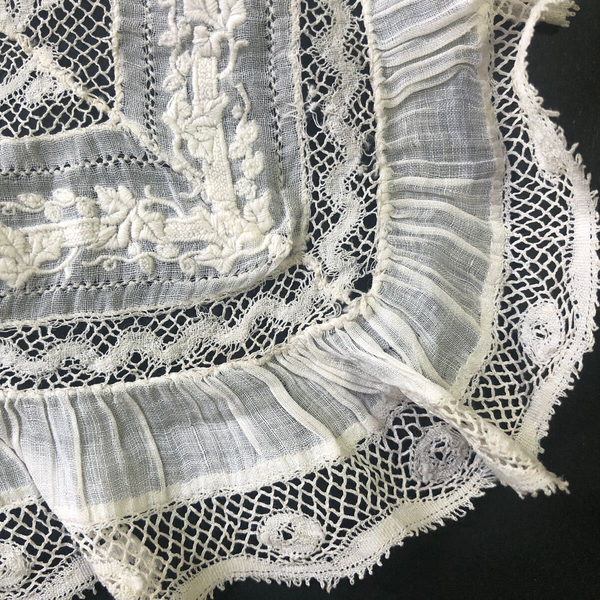 フランスアンティーク 豪華!美しいイニシャル入りたっぷりレースのハンカチ!手刺繍 ヴァランジェンヌ ハンドメイド リメイク 素材