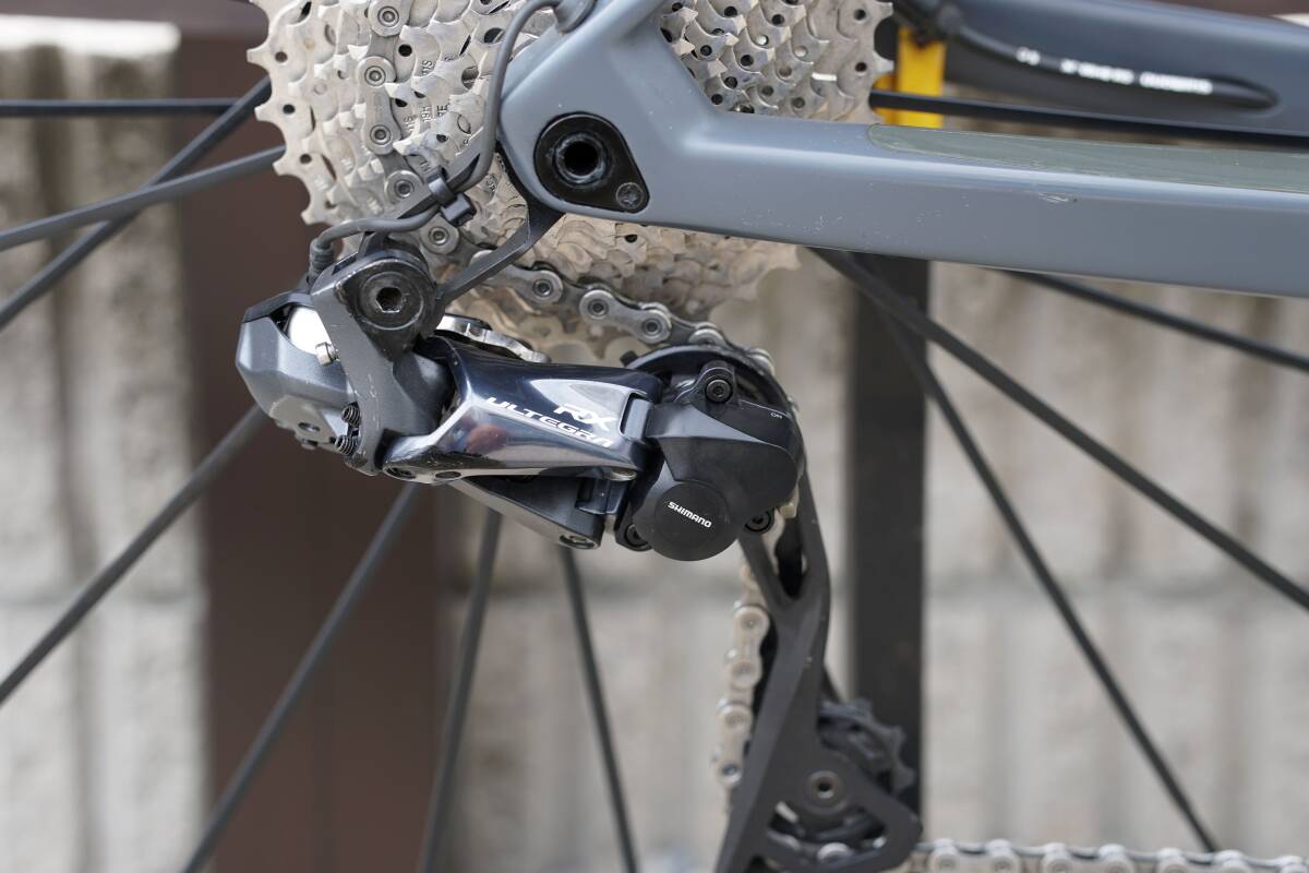 基本アルテグラDi2 11sですが、ブレーキキャリパはGRX、リヤディレイラはアルテグラRXです。