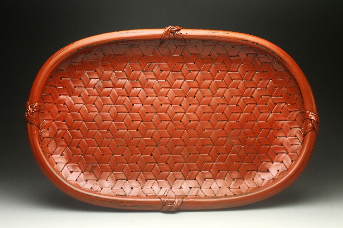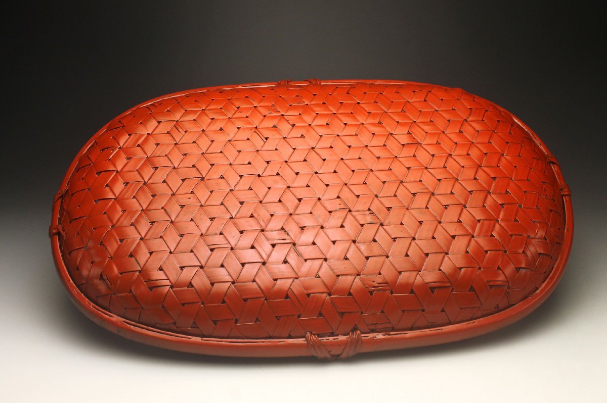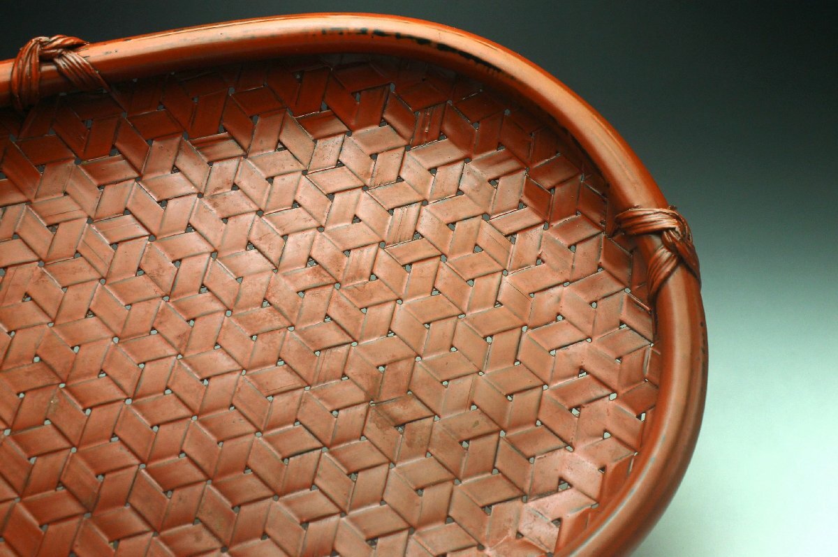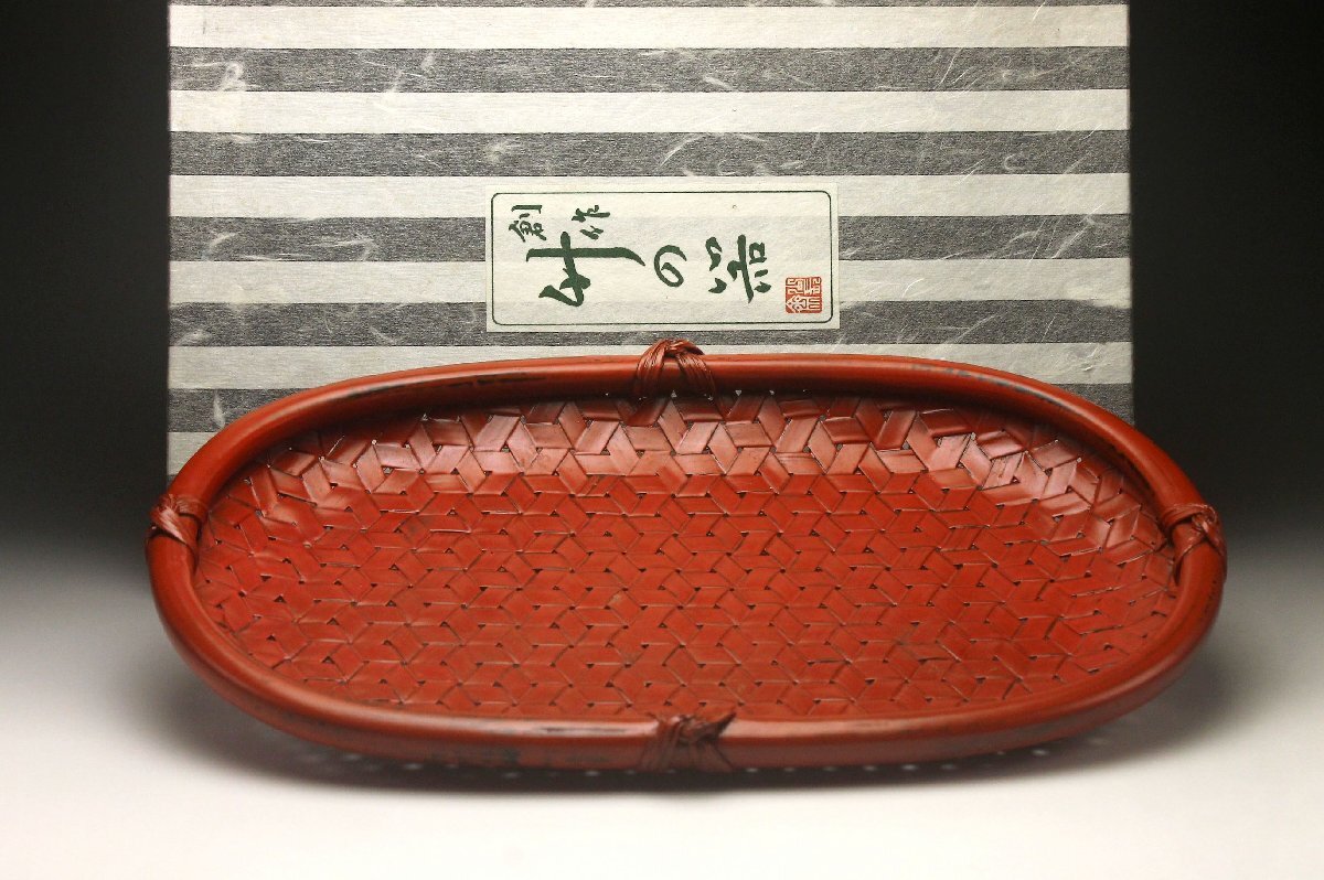 Product name: 【余韻】 竹の器 籠胎漆器 楕円盆★化粧箱 無傷美品 茶道具<同梱可>