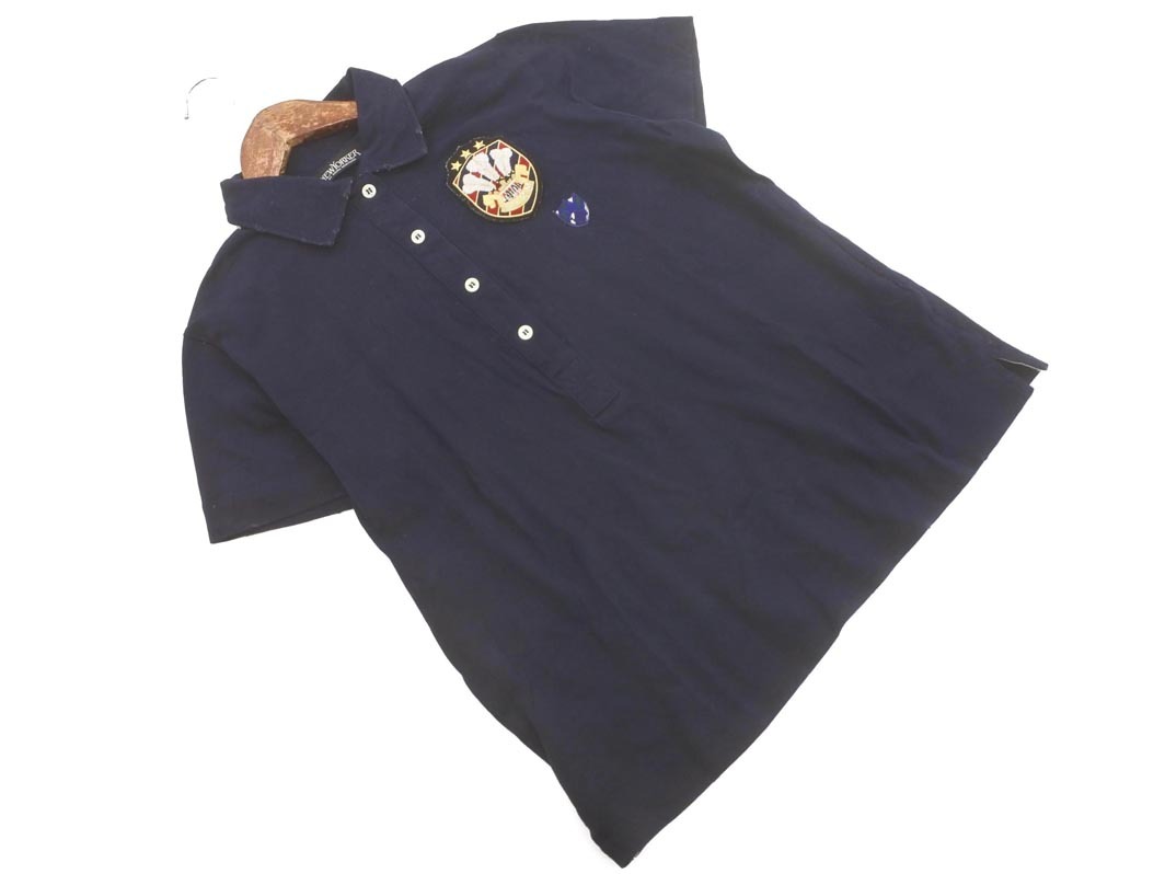 ネコポスOK NEWYORKER ニューヨーカー ダメージ加工 ワッペン ポロシャツ size15/紺 ■◆ ☆ fgb5 レディース