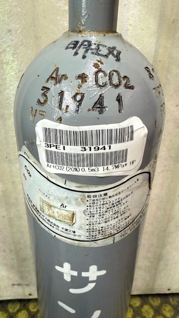 混合ガス 空瓶 Ar(80%) +CO2(20%) アルゴン+炭酸ガス 半自動溶接 tig 0.5m3 0.5立米 空き瓶 溶接