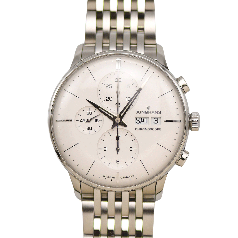 ユンハンス JUNGHANS マイスター クロノスコープ オートマティック 027/4121.45 自動巻 メンズ 紳士用 男性用 腕時計 研磨仕上げ済み 中古