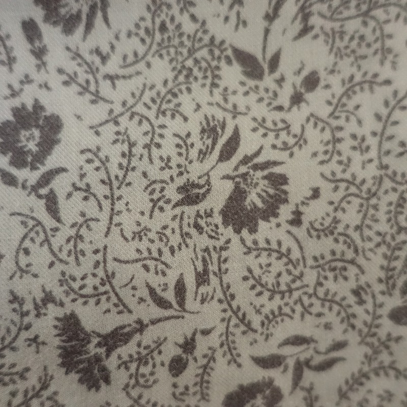 Hug O Warのサイドスリットフラワープリントイージーパンツです。カラーはライトグレー×褪せたダークブラウンで、花柄プリントの薄手地で仕立てられており、裏地が付いております。ウエストはゴム&ひも入り、裾サイドにスリット入り、ポケットは4つ付いております。別途共布ひもが付属されております。(ベルトループ等は付いておりません)