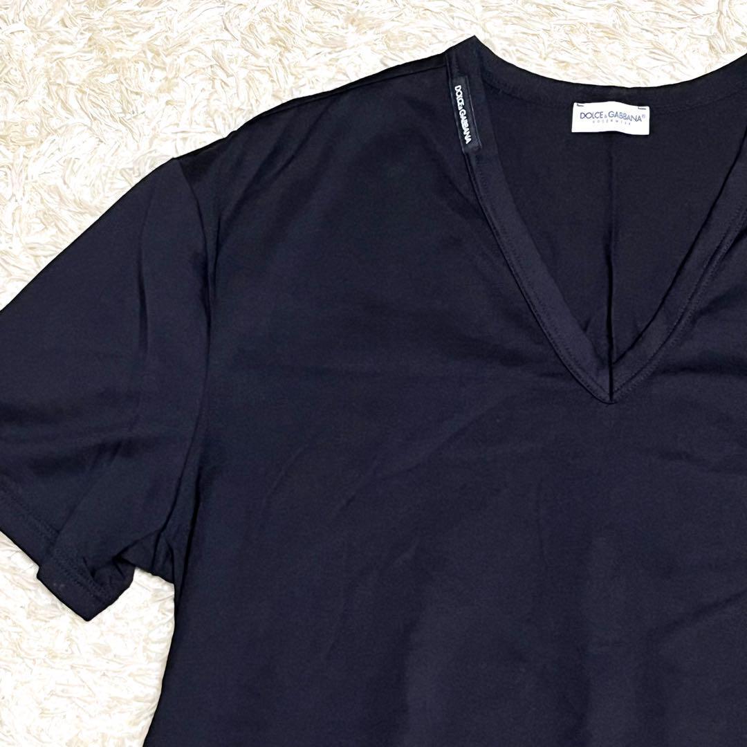 DOLCE&GABBANA Tシャツ カットソー ブラック 半袖 Vネック ドルチェアンドガッバーナ ドルガバ 黒色