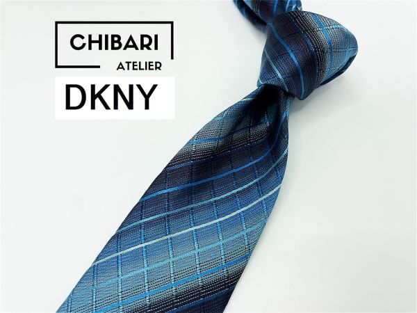 【超美品】DKNY ダナキャラン チェック柄 ネクタイ 3本以上 送料無料 メンズ ネイビー 0801082