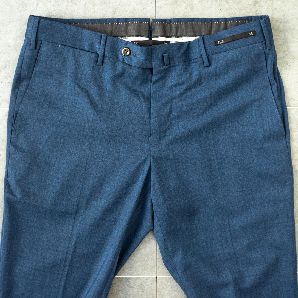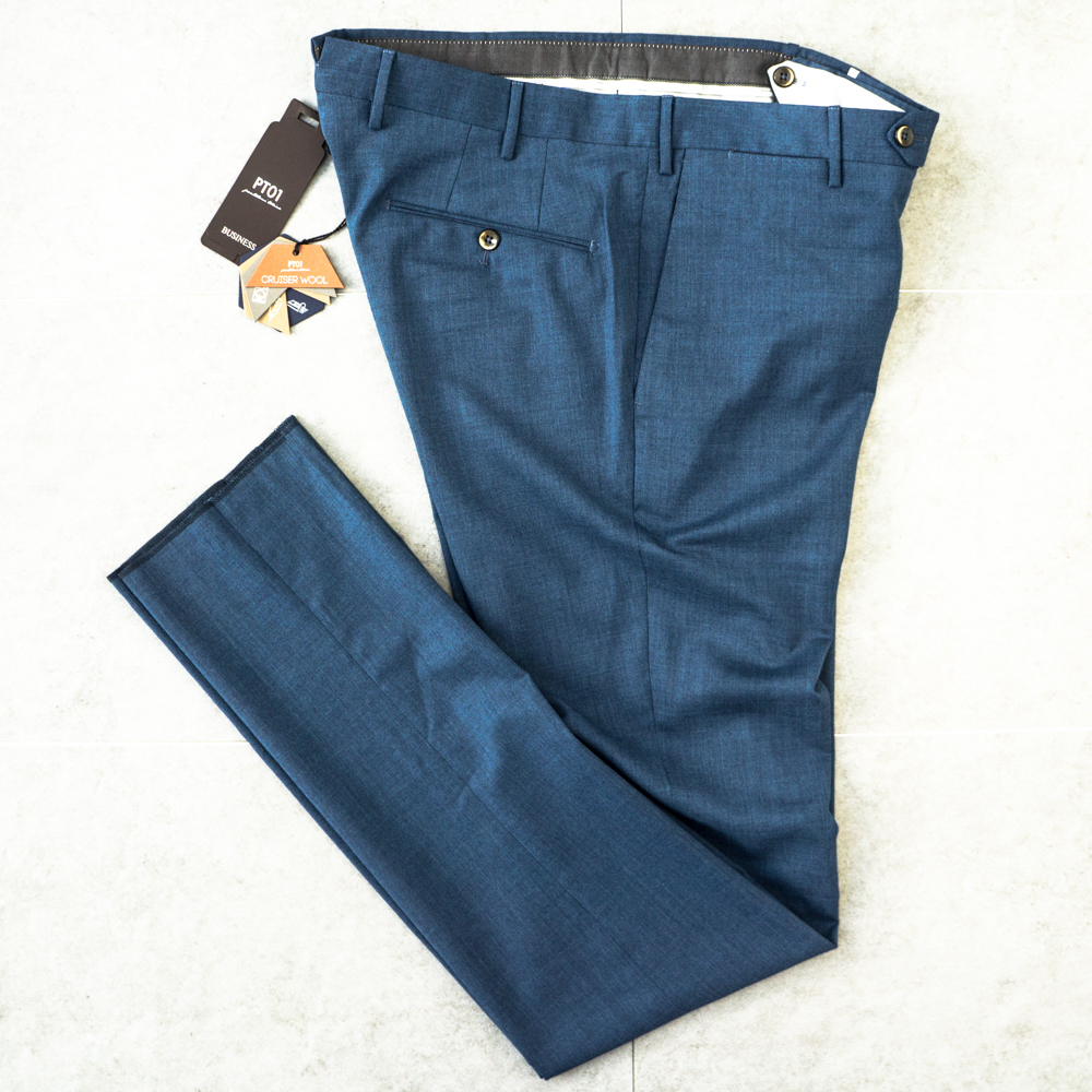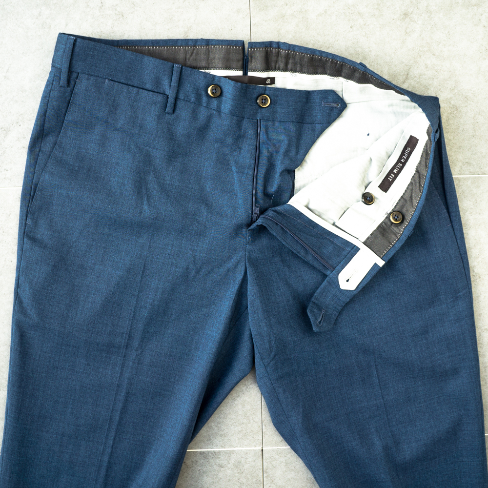 シルエットは人気を誇る安定のスーパースリムフィット。ノープリーツのスッキリとした腰回りの美しさ、美脚シルエットはPTならではです。細身ながらストレッチが効いているため、履き心地が良く、動きやすいです。