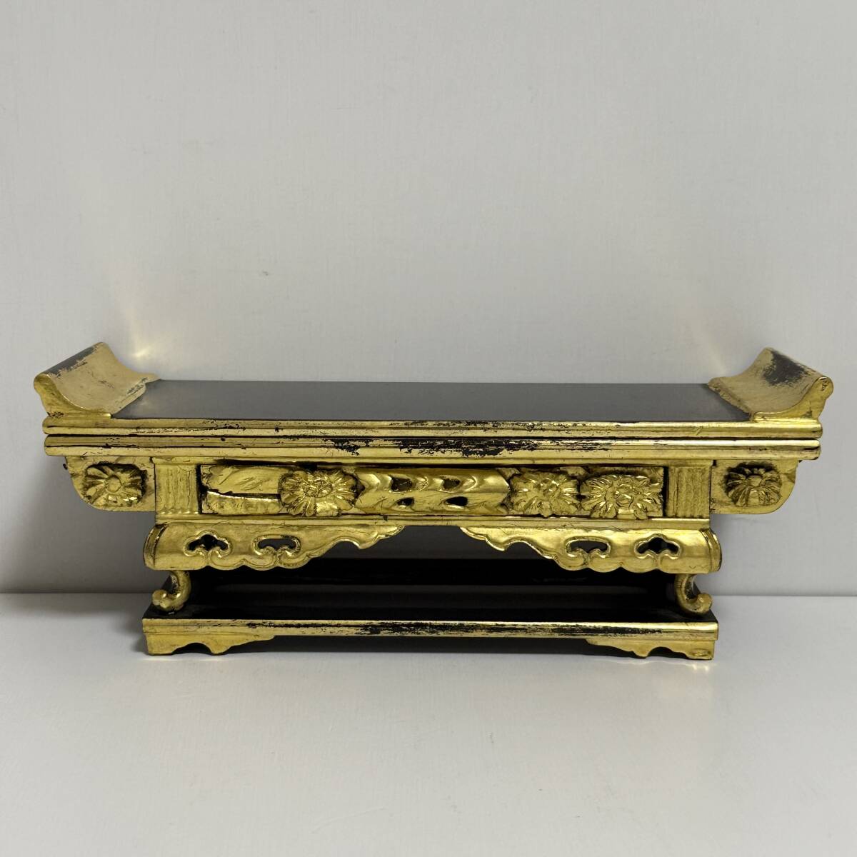 簡易クリーニング済 経机 横幅24.5×奥行8.0×高さ9.0(㎝) 仏壇テーブル お供え机 仏具 精密彫刻 木工芸 塗り物 金箔 仏教美術 FT661