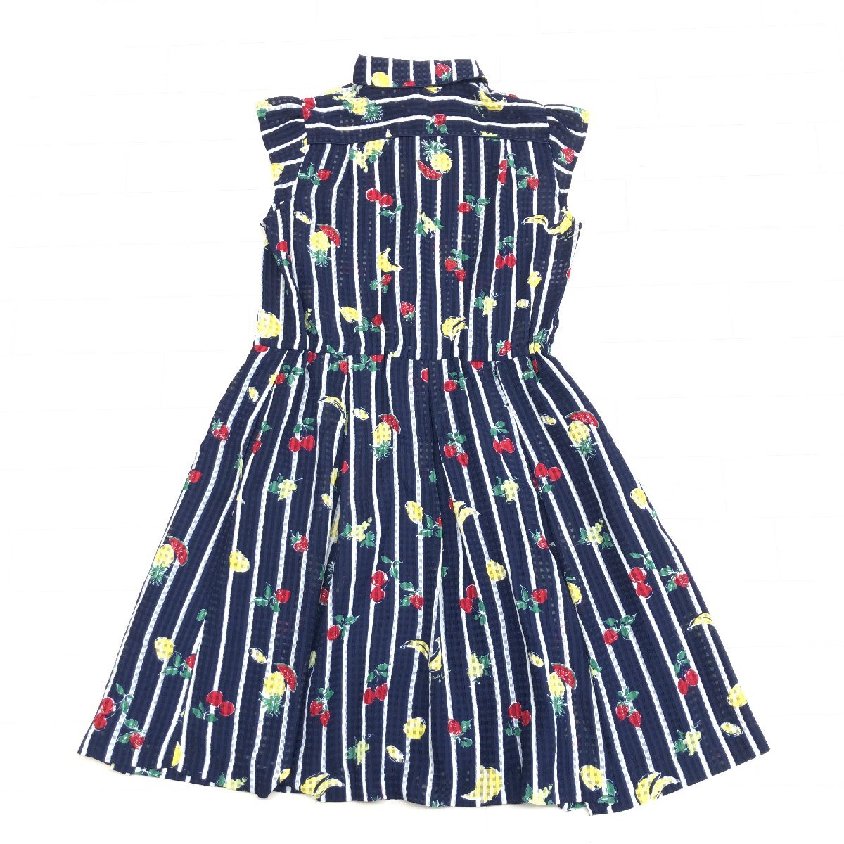Product name: 美品 DOLLY GIRL BY ANNA SUI アナスイ レイヤード 総柄 ギャザー シアードレス ワンピース 2(M) 濃紺 ネイビー フルーツ柄 半袖 ミディ丈