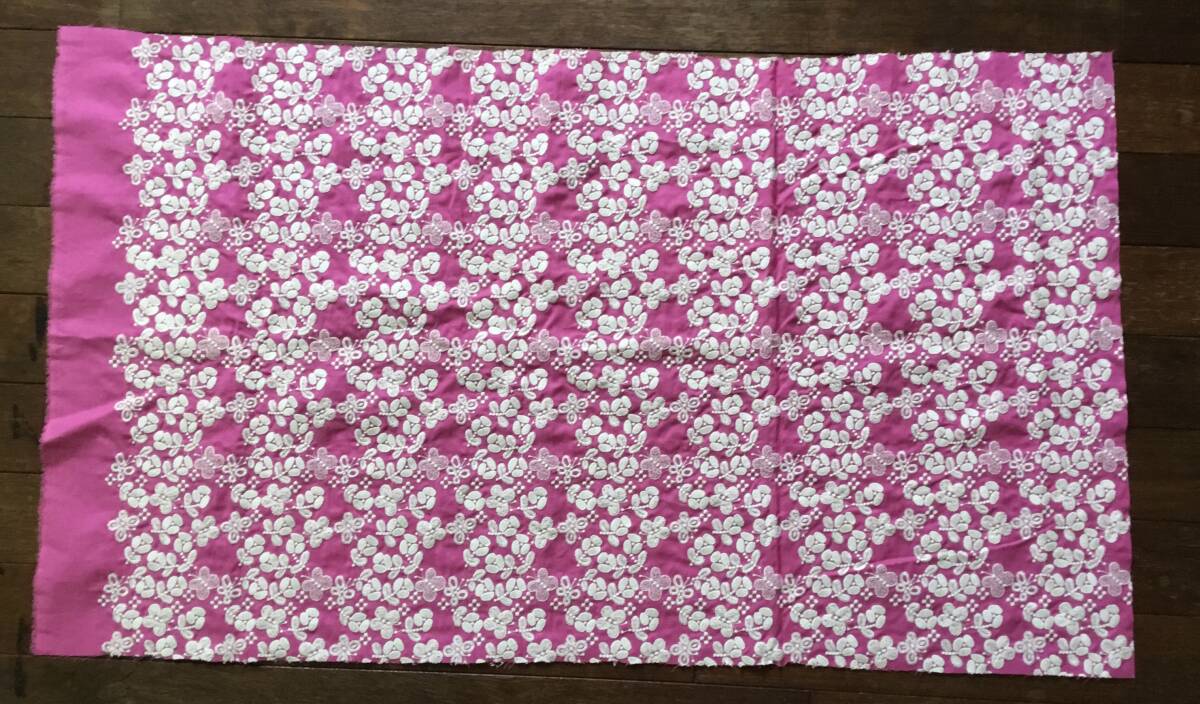 刺繍生地・綿リネン・綺麗なピンク