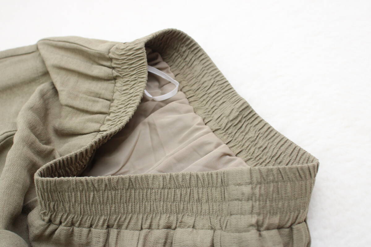 Product name: 2931 新品 ウエストゴム麻調パネルスカンツ オリーブFサイズ 定価¥12,000+税