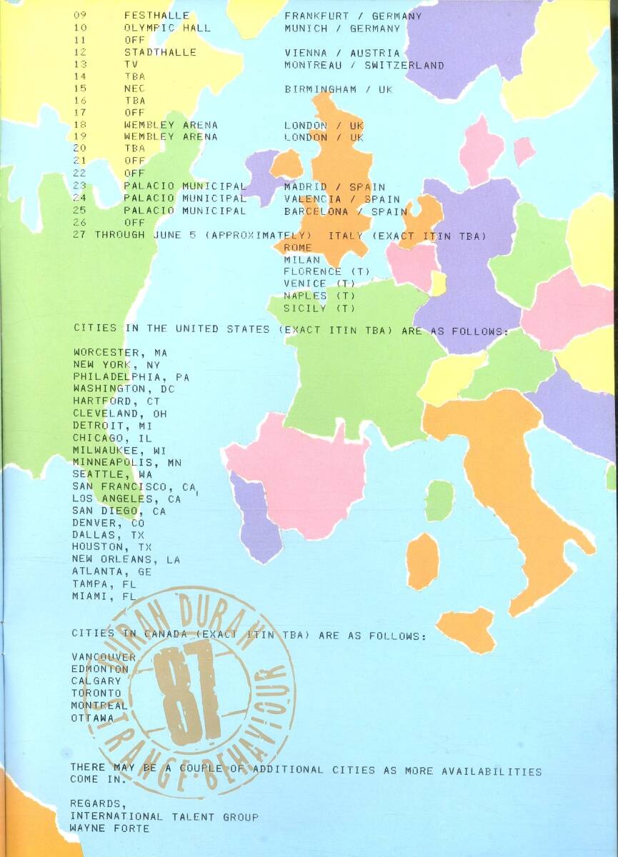 タイトルDuran Duran Strange Behaviour World Tour 1987(1987年)