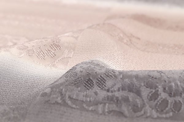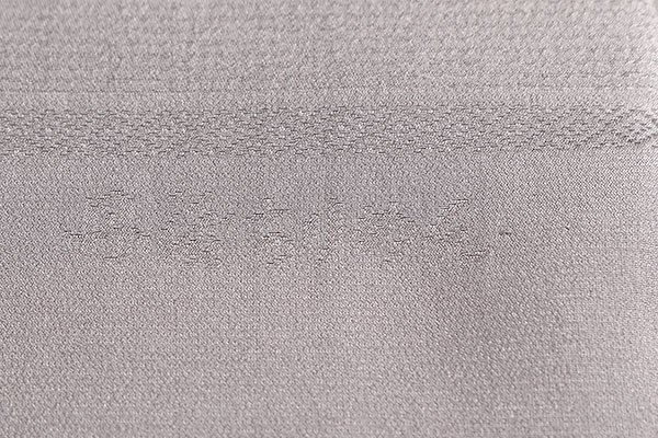 生地には市松状に模様が配されており、花模様や七宝文、花唐草の地紋が施されております。