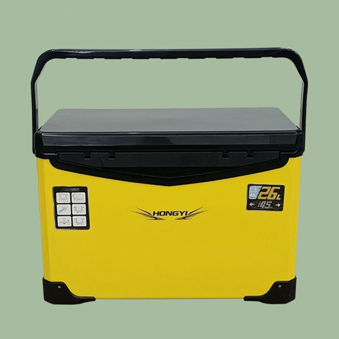 Product name: 釣り用 クーラーボックス 小型26L ふた両開き 座れる頑丈ボディ 防水 保温保冷 ハンドル/肩ベルト付き 保冷力24-48h イエロー