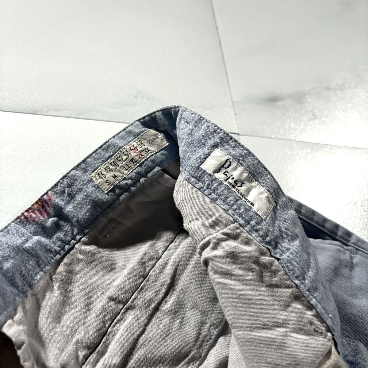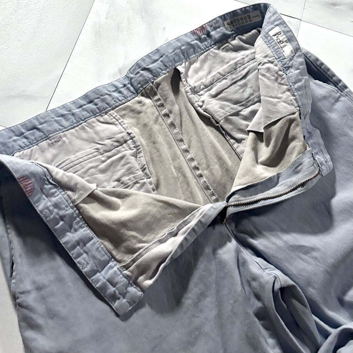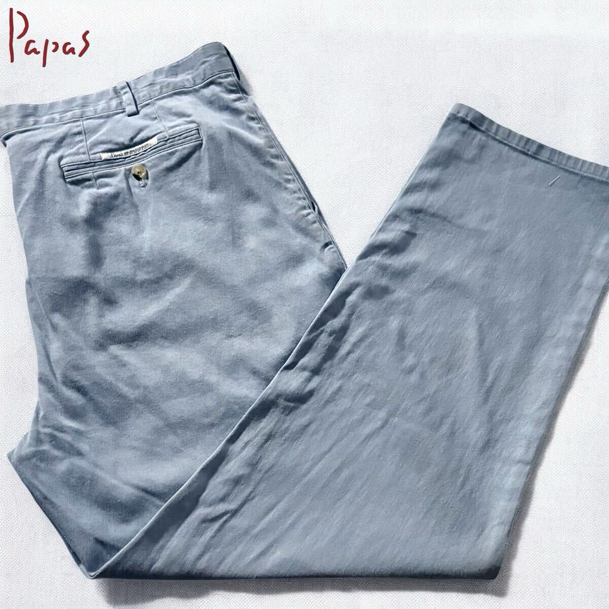 Product name: 爽やか/3L●PAPAS パパス リネン混 ストレッチ パンツ チノパン スラックス サマー 夏 ゆったり 背面ロゴタグ ブルー 水色 手洗い可 XXL 56