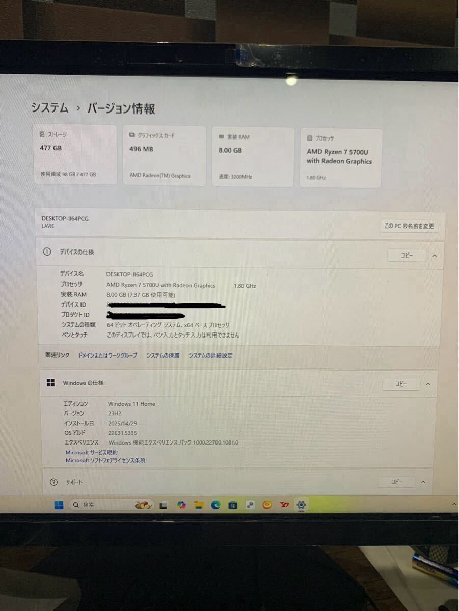 Product name: NEC 一体型 デスクトップ パソコン LAVIE PC-A2365DAB-E3 Windows 11 Home AMD Ryzen 7 5700U SSD 8.00GB