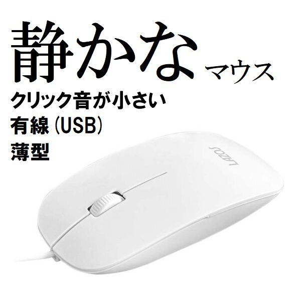 新品 Lazos 有線マウス USB接続 光学式 3ボタン 静か 薄い 左利き 右利き 兼用 白