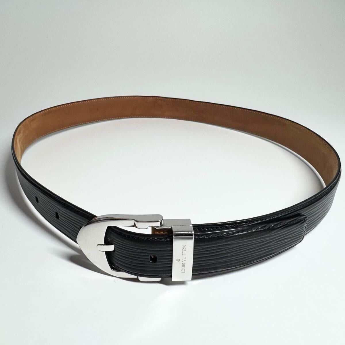 1円【美品】LOUIS VUITTON ルイヴィトン エピ サンチュール ベルト シルバーバックル クラシック レザー 本革 ブラック 黒色 メンズ