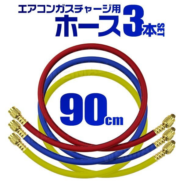 エアコン ガスチャージホース R134a R12 R22 R404 R502 3本セット 90cm 1/4フレア マニホールドゲージ用 チャージング 交換用ホース