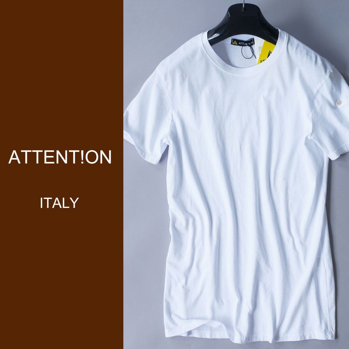 ●中部イタリアの街着ブランド「アテンション」の、袖ポケットがアクセントになりました、爽やかな薄口コットンデザインTシャツです。当方のみ扱う、貴重な日本国内未入荷ブランドでございます。イタリア製。