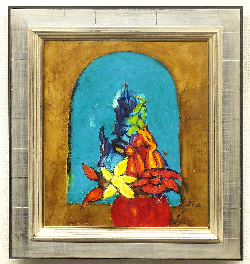 ●   作品寸:45.5×37.9cm                  キャンバスに油彩                    作品状態は概ね良好(右下・花に縮みがあります)