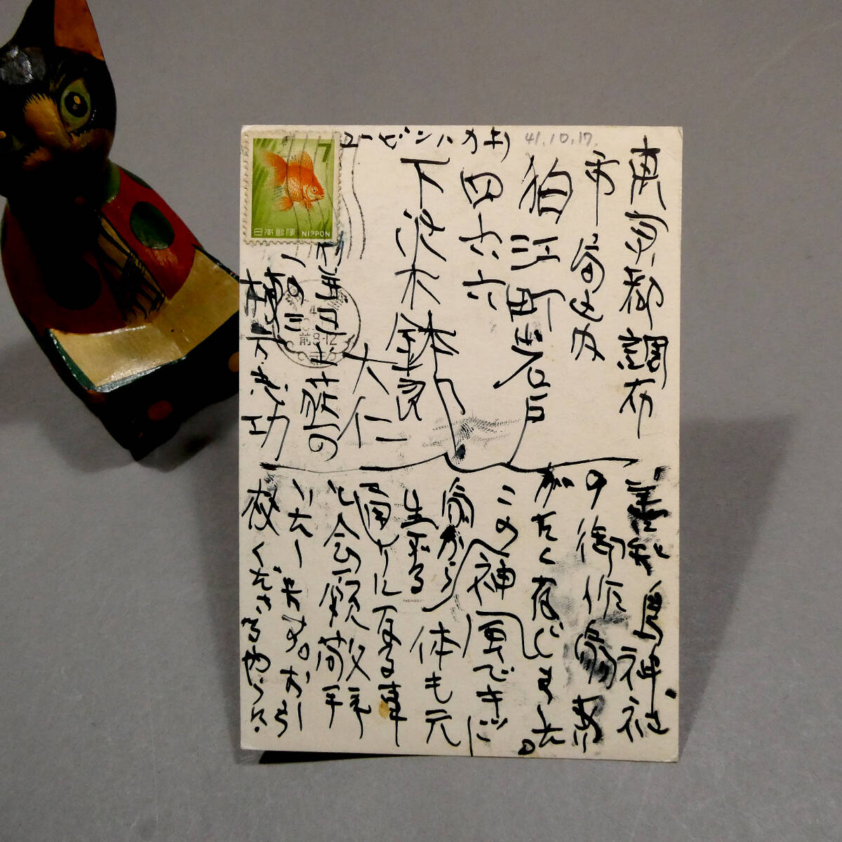 昭和41年10月17日消印。ややヤケ、ややヨゴレ。宛名面上部に日付書込み。がございます。経年による中古感はございますこと、ご了承ください。詳細は、画像をご参照くださり、ご質問もお受けいたします。