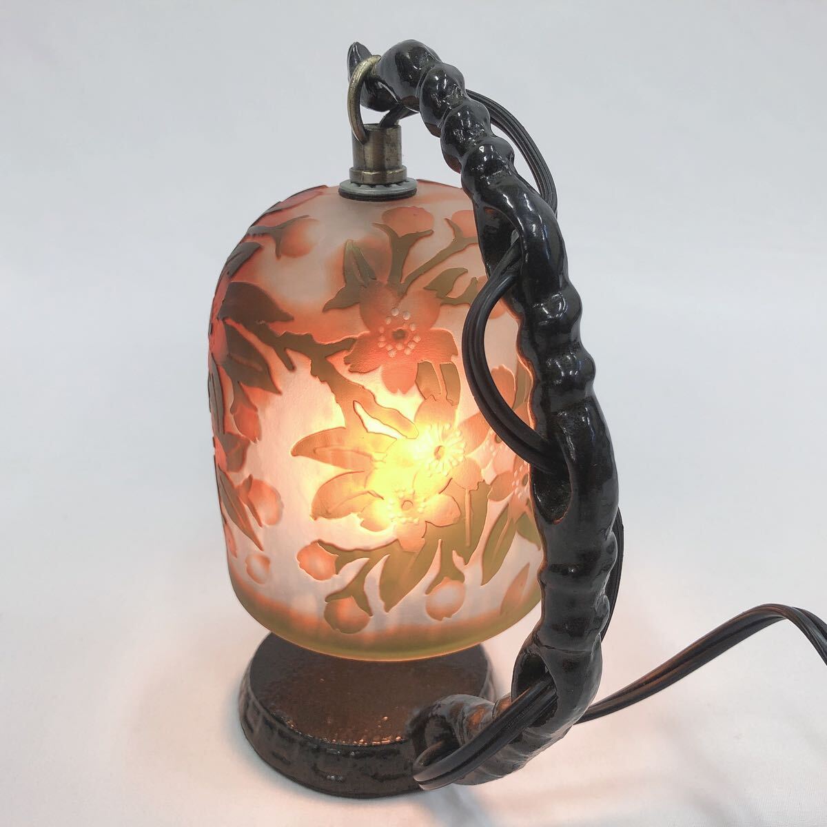 【動作品】ガレ風吊り下げ型 テーブルランプ スタンドライト ガラス 花柄 アンティーク レトロ 卓上ランプ GALLE ART R野0628●