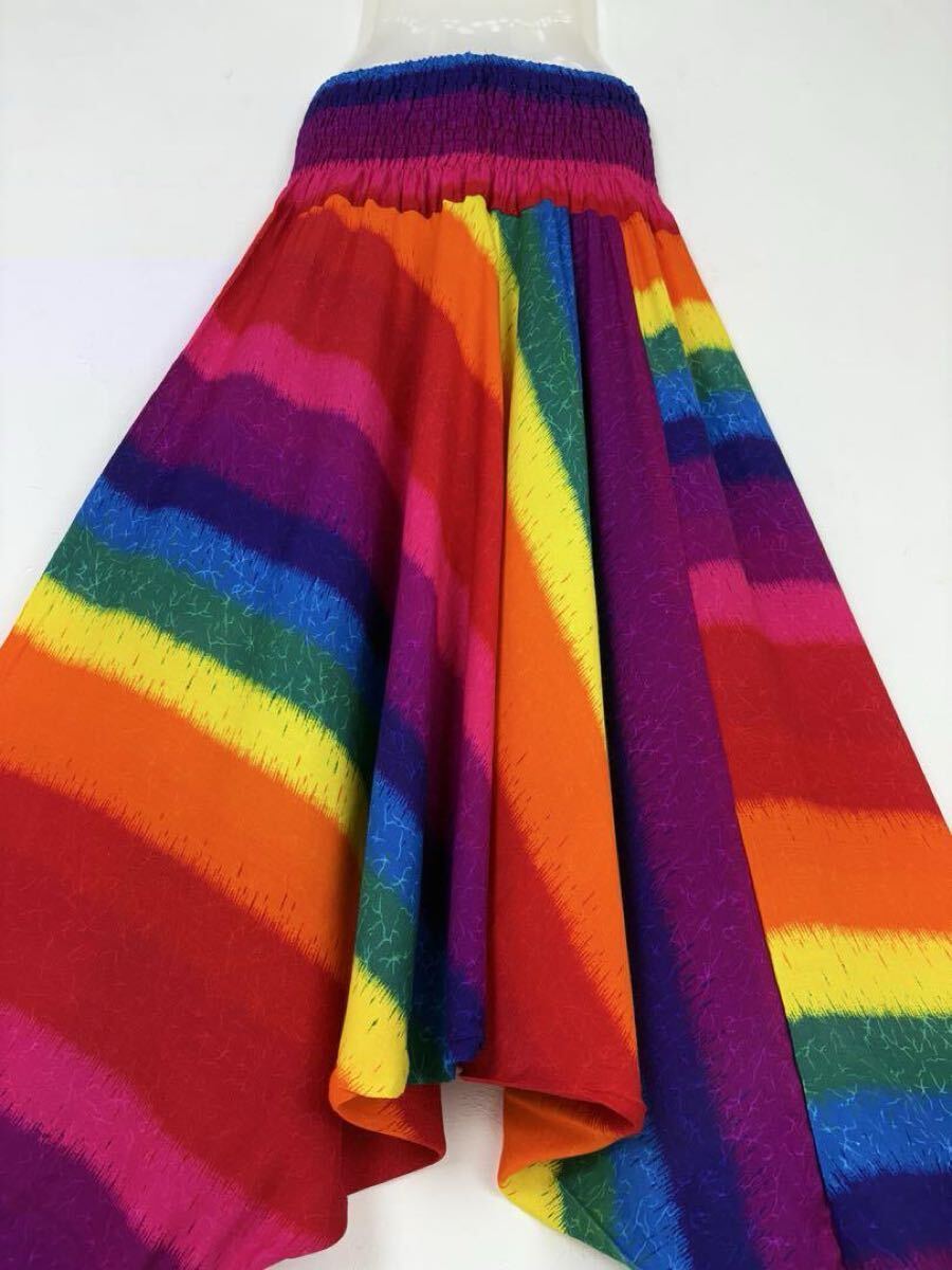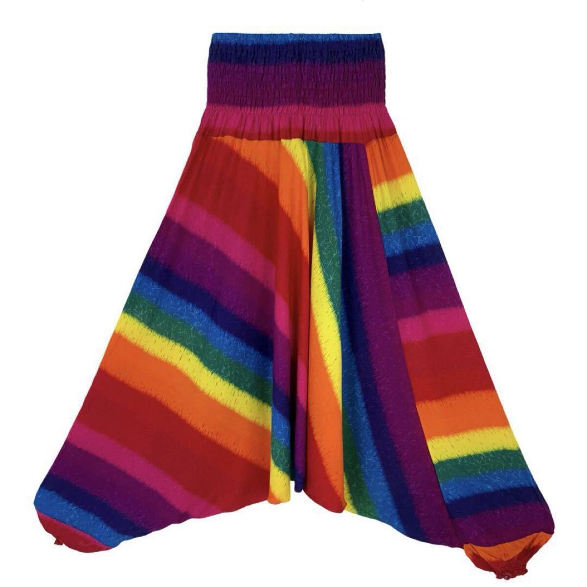 【新品】 サルエルパンツ タイパンツ アラジンパンツ 男女兼用 ヨガ ダンス お部屋着 2way レーヨン レインボー Y383