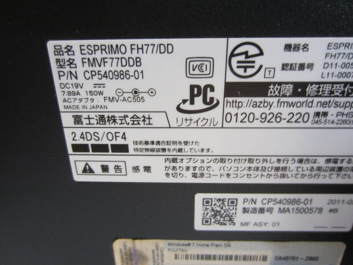 Product name: 23型FHDタッチパネル液晶搭載一体型PC 富士通FMV-ESPRIMO FH77/DDを売ります。