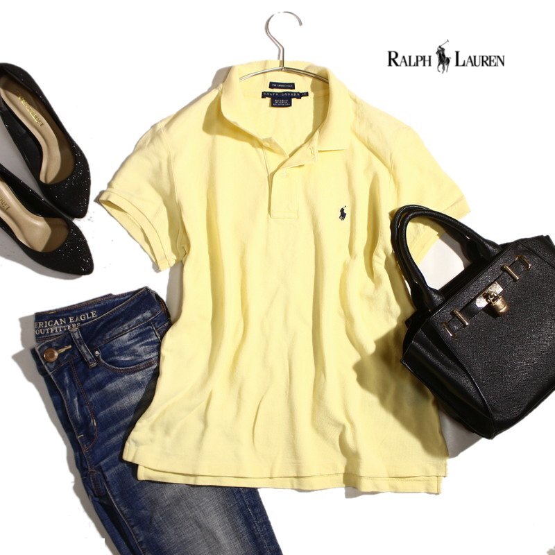 Product name: 美品 ラルフローレン RALPH LAUREN 夏 The skinny polo スモールポニー 刺繍 鹿の子 ポロシャツ L / G イエロー 黄色 ネイビー 紺 半袖