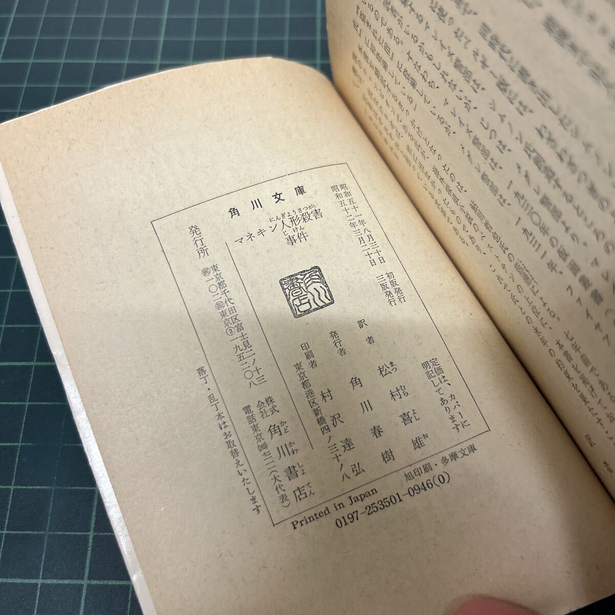 Product name: マネキン人形殺害事件 S.A.ステーマン(著) 松村喜雄(訳) 昭和52年 角川文庫