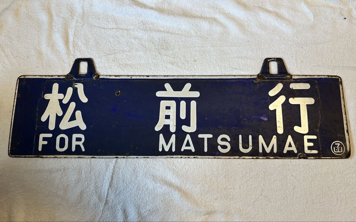 Product name: 廃線 松前線 吊り下げ凹文字 ホーロー行先板