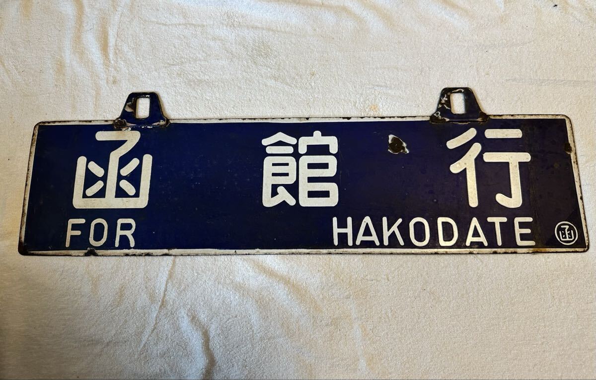 廃線 松前線 吊り下げ凹文字 ホーロー行先板