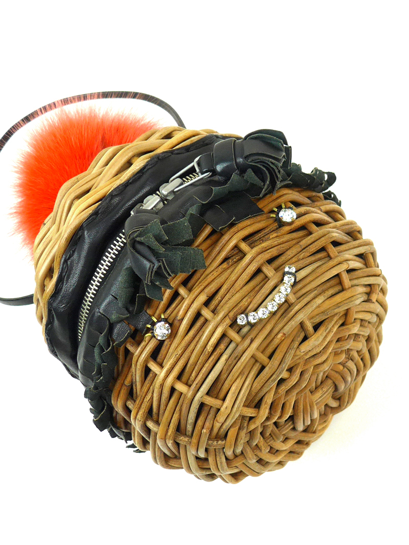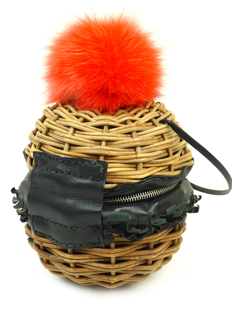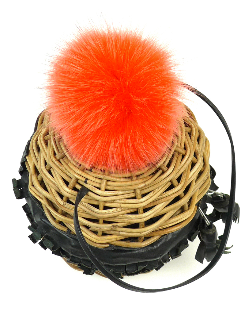 まるっと可愛いバスケットバッグに、オレンジのフォックスファーポンポンときらきらビジューのスマイリーブローチを飾った希少なモデルです!