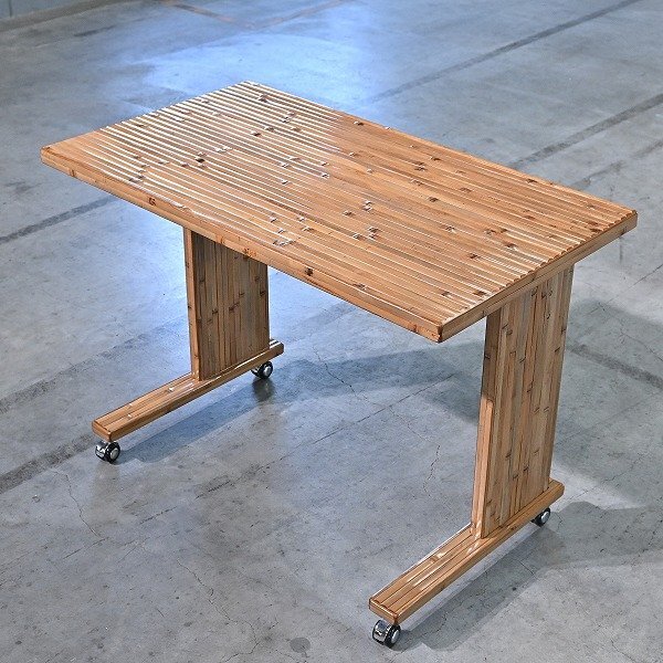 梅里竹芸 12万「長椅子用テーブル」キャスター デスク 作業台 勉強机 学習 リビング ダイニング 書斎 ナチュラル