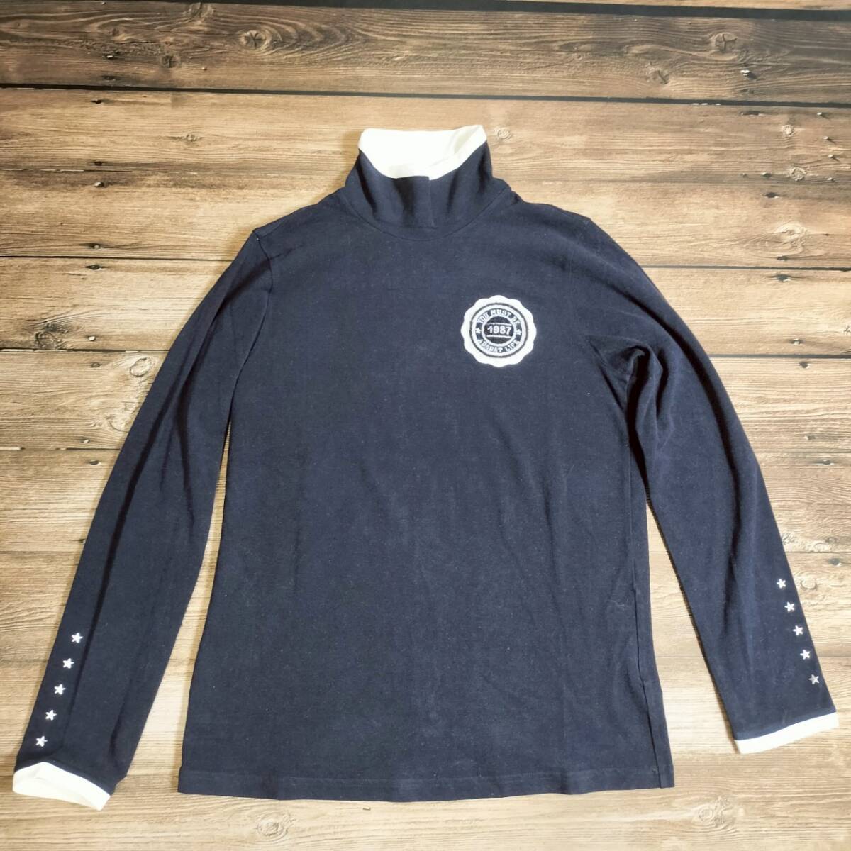 ストレッチ 日本製 adabat アダバット レディース ゴルフウェア 長袖 シャツ ハイネック ロゴ刺繍 ネイビー Mサイズ 吸汗速乾 シンプル